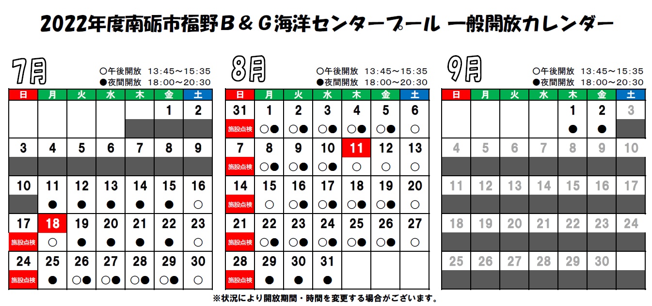 2022年B&G海洋センタープール一般開放カレンダー ⇒ プール一般開放カレンダー(2022)