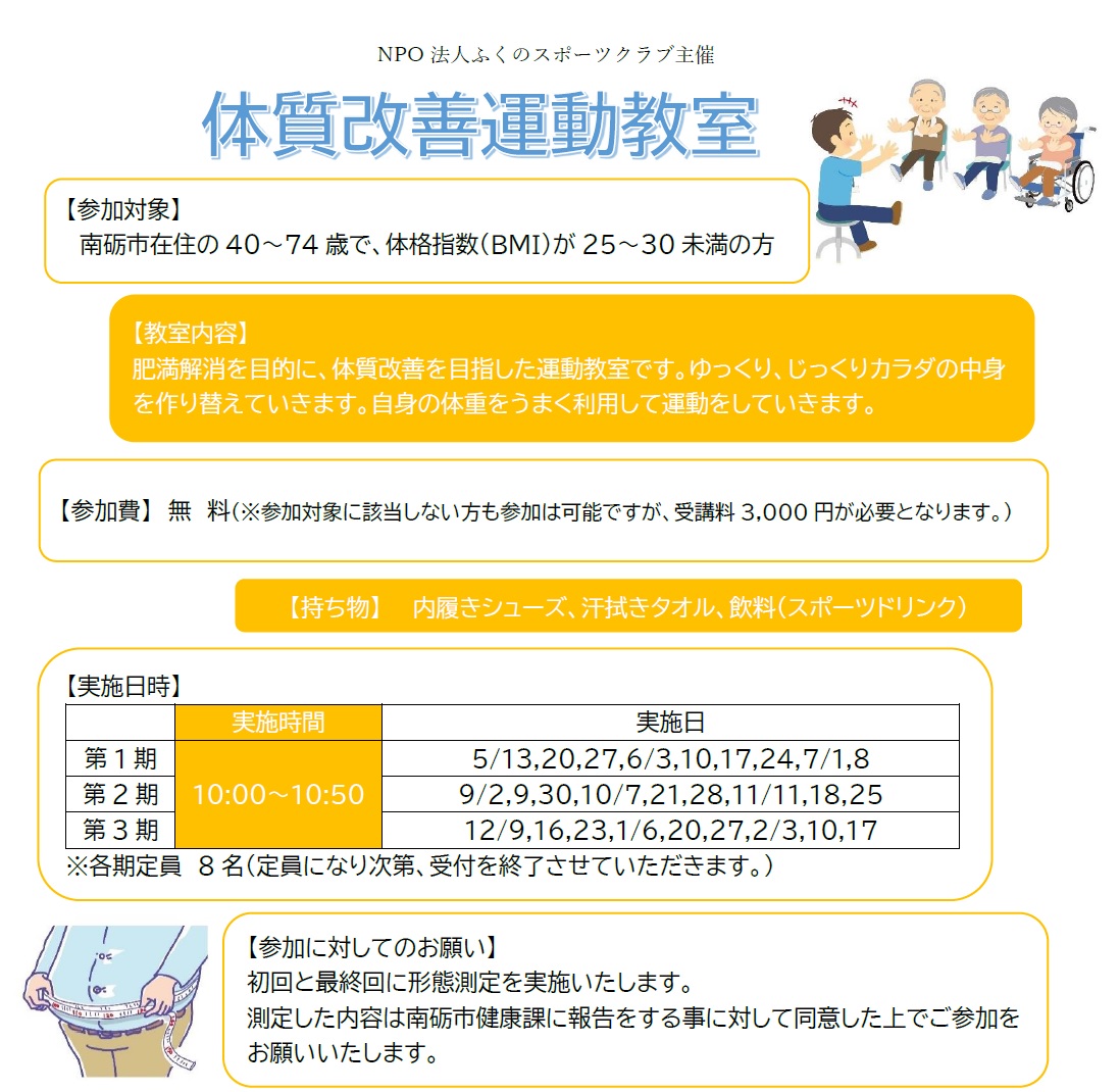 さて、毎年、少人数で開催をさせていただいています『体質改善運動教室』ですが、今年も実施させていただきます。