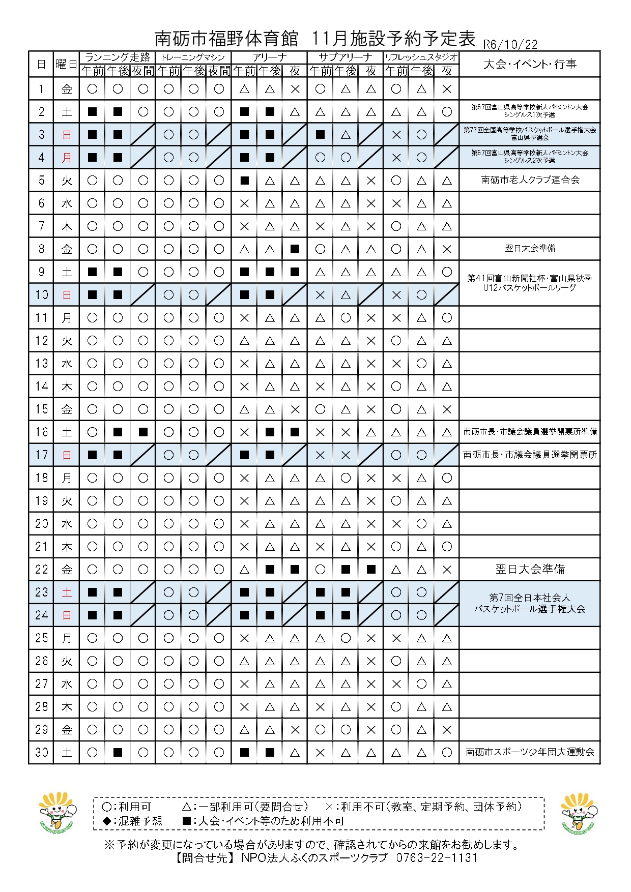 Home > INFORMATION > 施設予約状況について(11月)