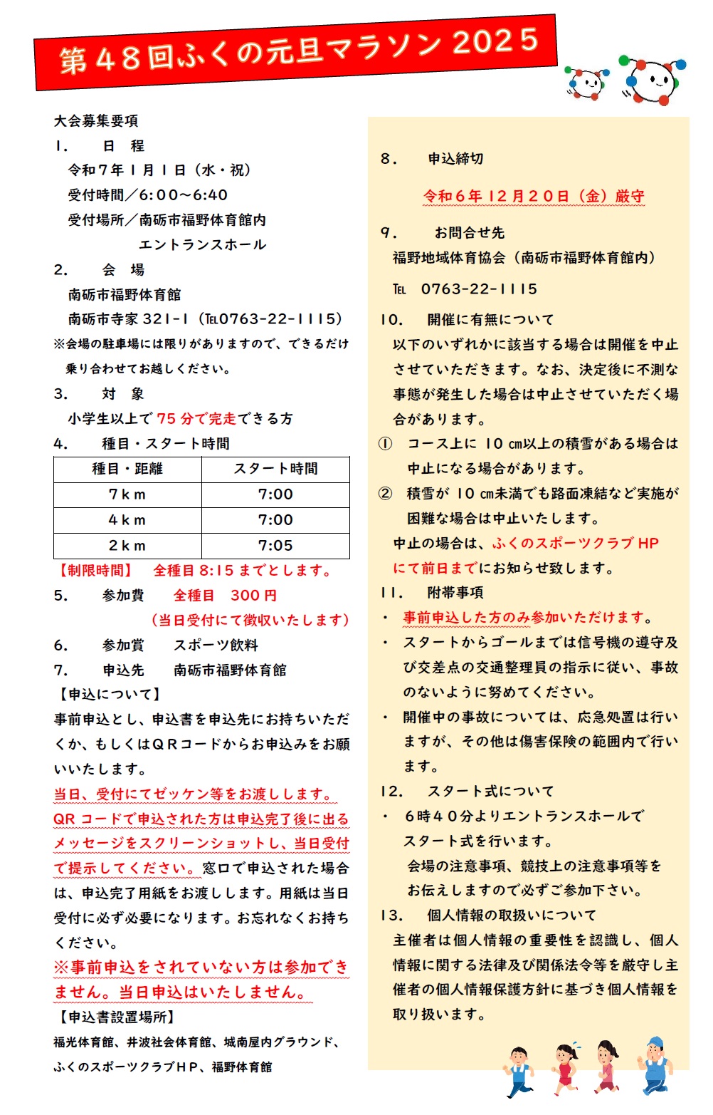 Home > INFORMATION > 第48回ふくの元旦マラソン2025 開催のご案内