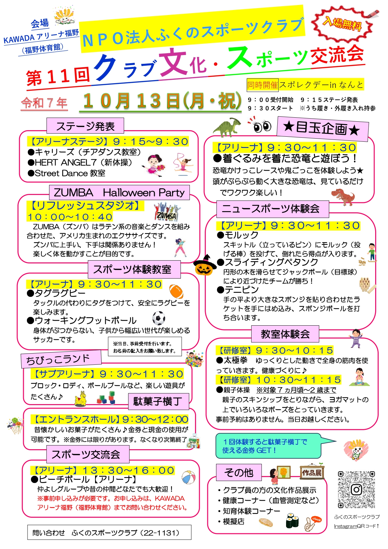Home > INFORMATION > 第11回クラブ文化スポーツ交流会開催のご案内(10/13)