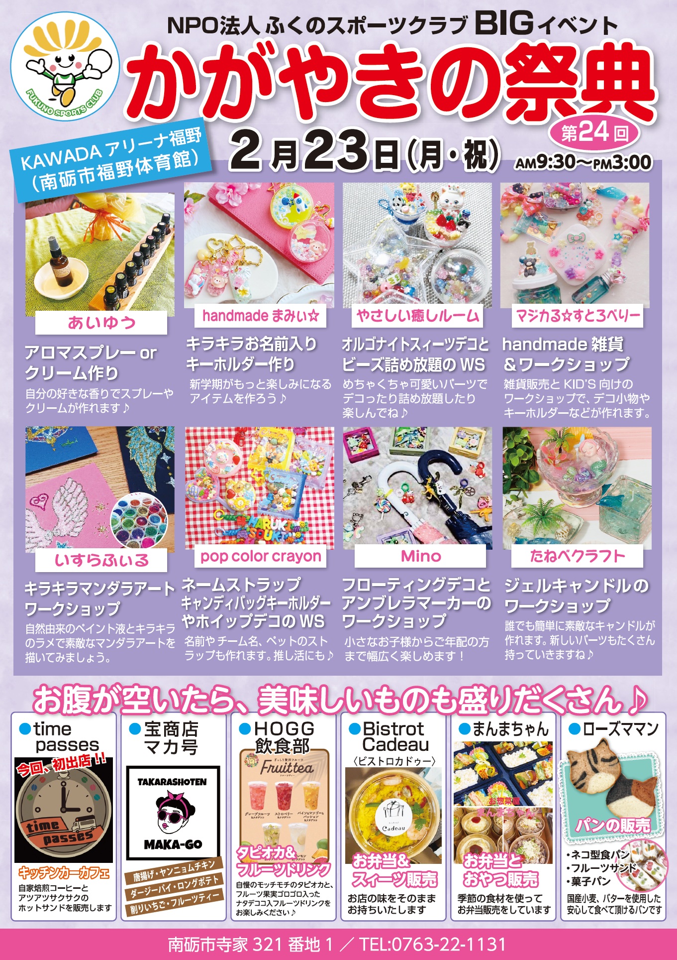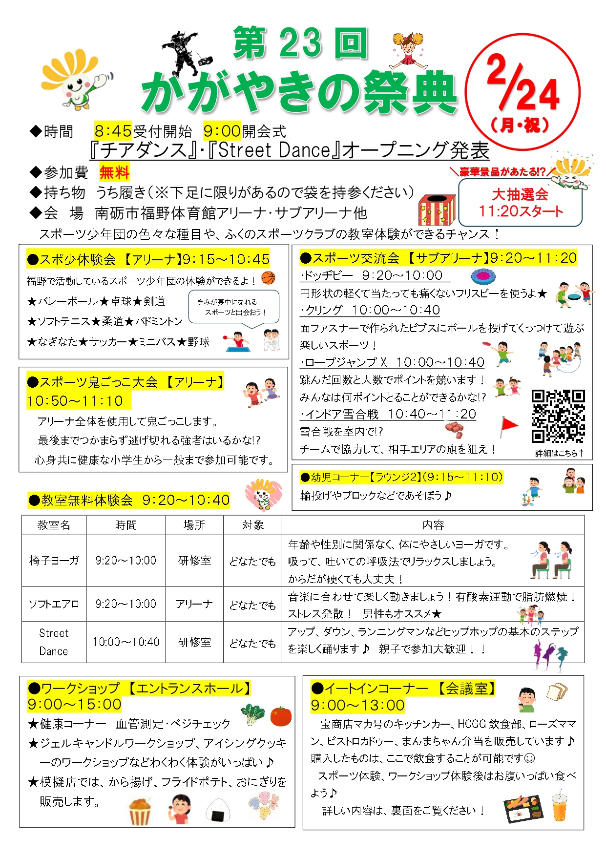 さて 今年も毎年恒例となっております『第24回かがやきの祭典』及び『スポーツ少年団体験会』を2月23日(月・祝)に開催いたします